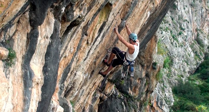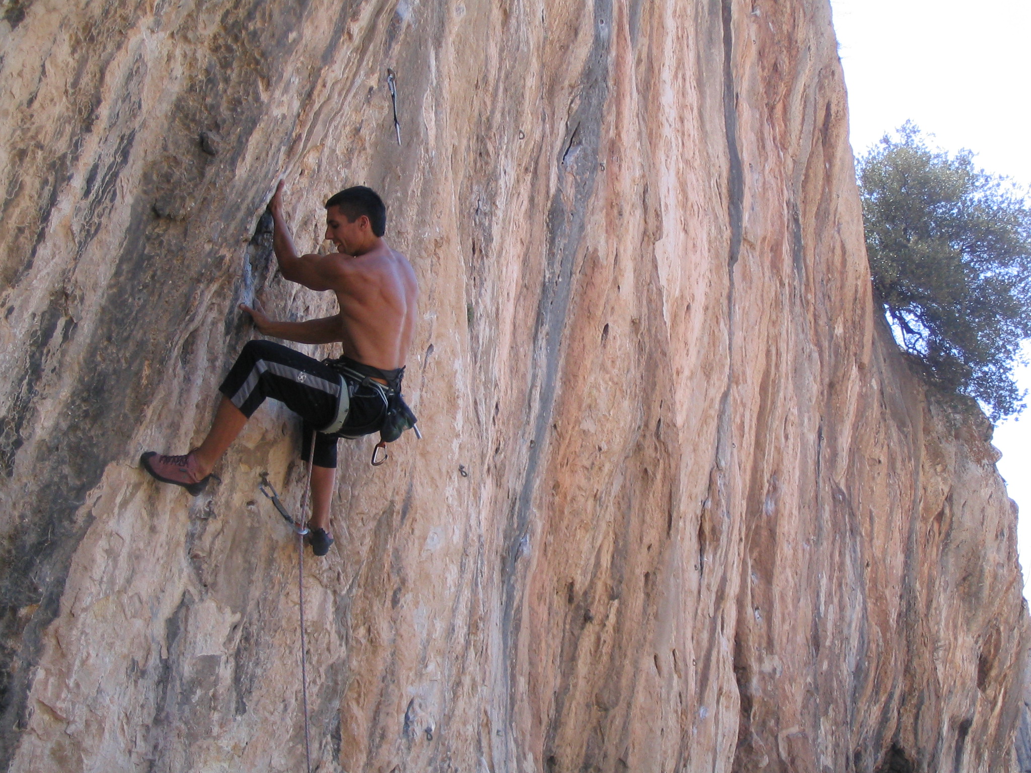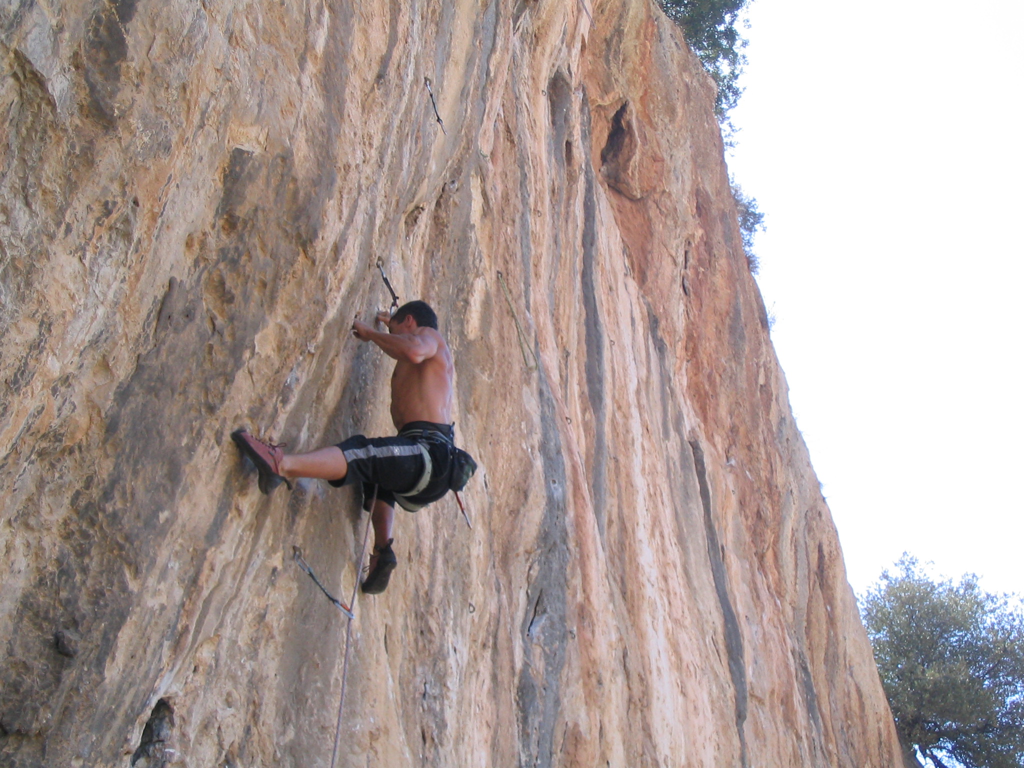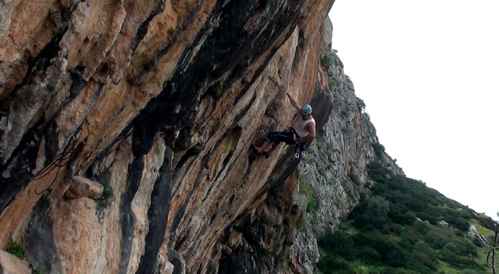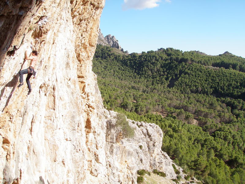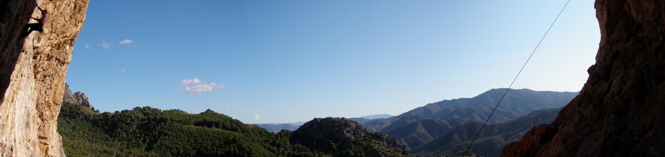 Vista panorámica.Rodri en "Viejo Traido" (7b+) en las frontales medias, concretamente en el sector "Poema Roca".